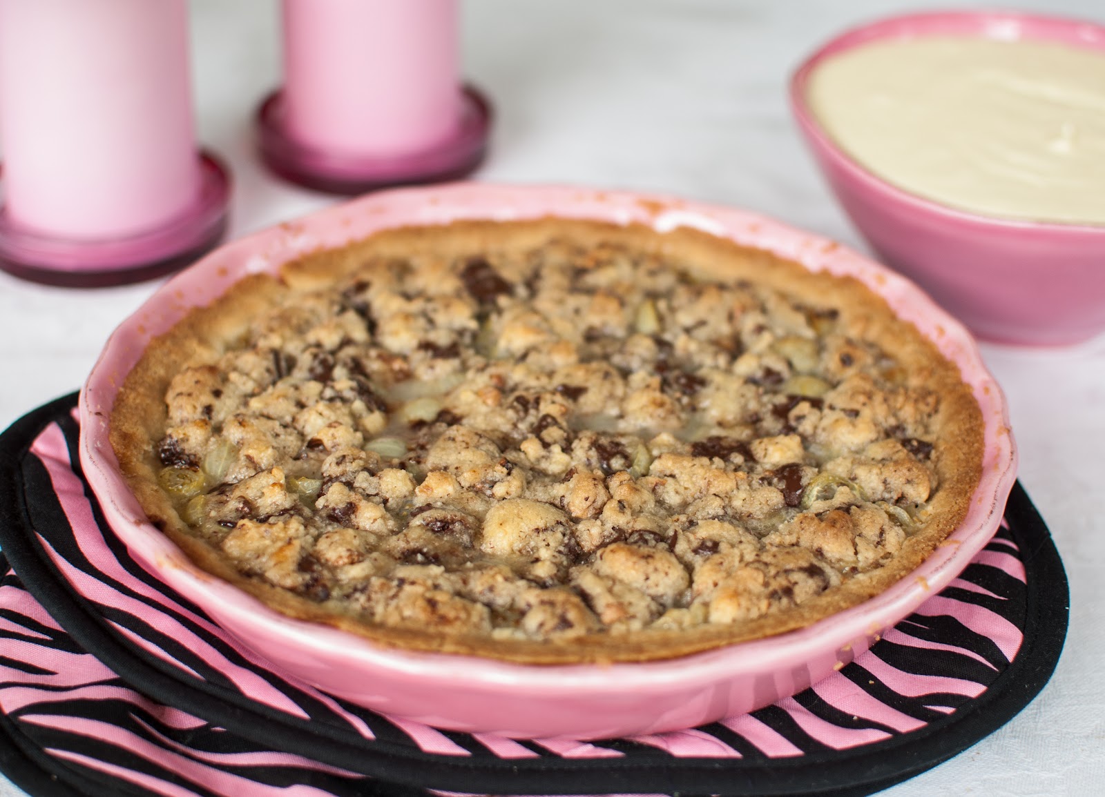 Krusbärspaj med smultäcke, valnötter och mörk choklad